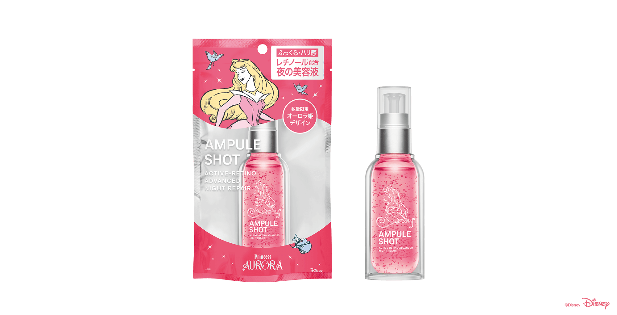 夜の肌に時間差保湿*で美肌に導くレチノール*¹配合シリーズからディズニー・アニメーション映画『眠れる森の美女』の「オーロラ姫」デザインアイテムが登場。「オーロラ姫」デザインのアイテムが、寝ている間の夜の美肌ケアをサポートします。