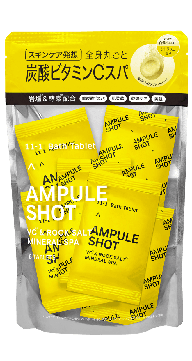 *原液配合のスキンケア *1 乾燥によって毛穴の開いた肌 *2 乾燥による *3 角質層まで *4 保湿 *5 パルミチン酸アスコルビルリン酸3Na(保湿) *6 有効成分 *7 メラニンの生成を抑え、しみ・そばかすを防ぐ *8 炭酸ガス(噴射剤として)[AS バブルエステ 洗顔フォームに配合] *9 リン酸アスコルビルMg、アスコルビン酸Na(全て保湿) *10 海塩(保湿)